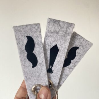 Llavero de fieltro en color gris con anilla en plateado. Podemos personalizar con vinilo. Un detalle muy bonito para el día del padre.