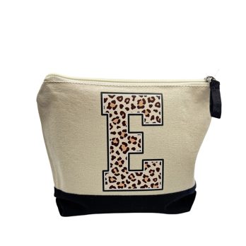 Neceser color crudo y negro con la inicial en animal print.  Las medidas son 22X18cm. y un fondo amplio con 6cm. Es ideal para los utensilios de maquillaje, las cosas de aseo etc…