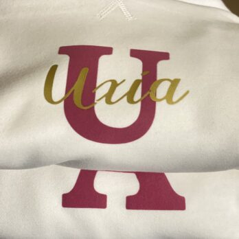 Sudadera para bebés. Con inicial en vinilo aterciopelado y nombre en vinilo dorado purpurina.  Tenemos varias opciones de diseño y colores.